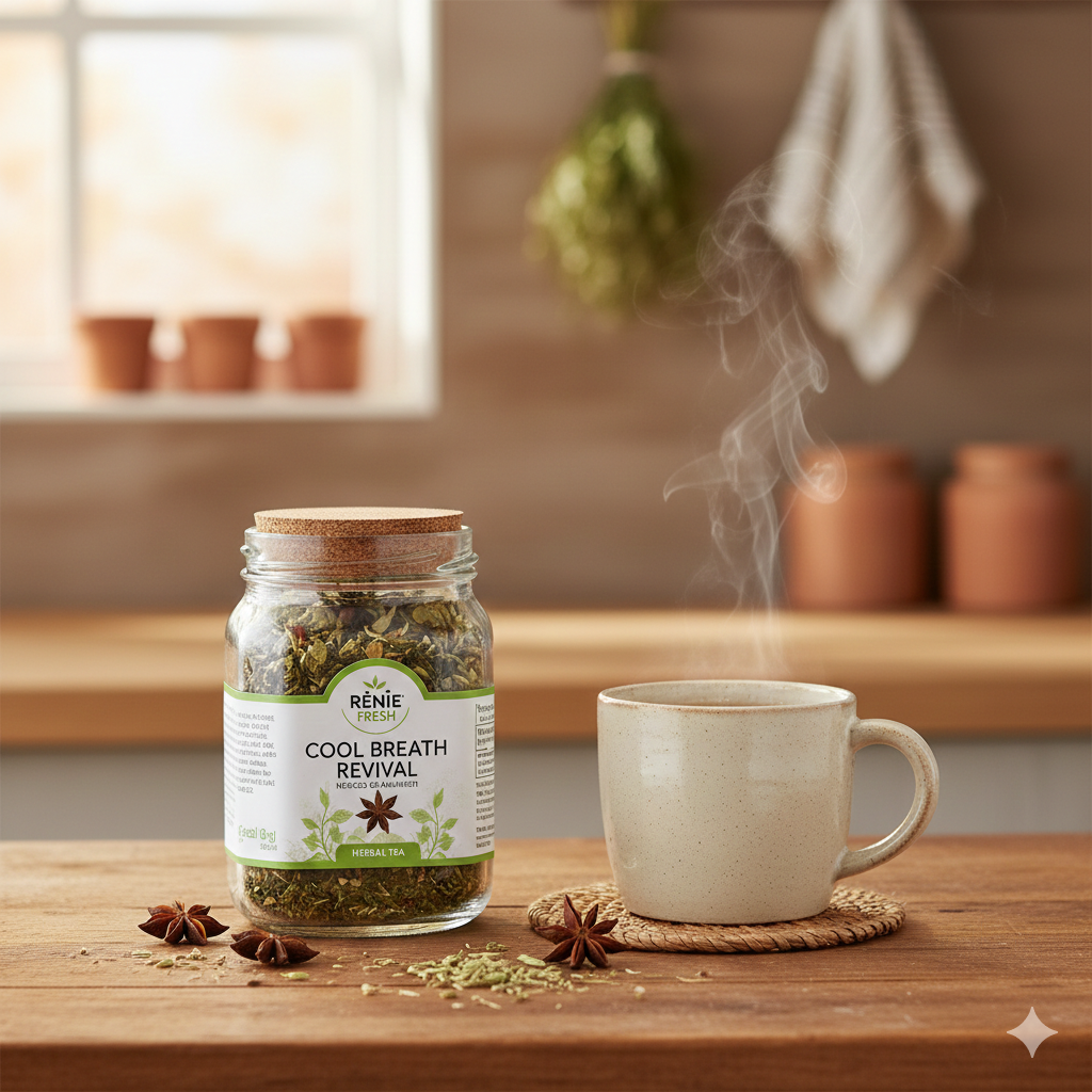 A cooling mint tea with gentle spices traditionally used to support digestion and comfort after meals.