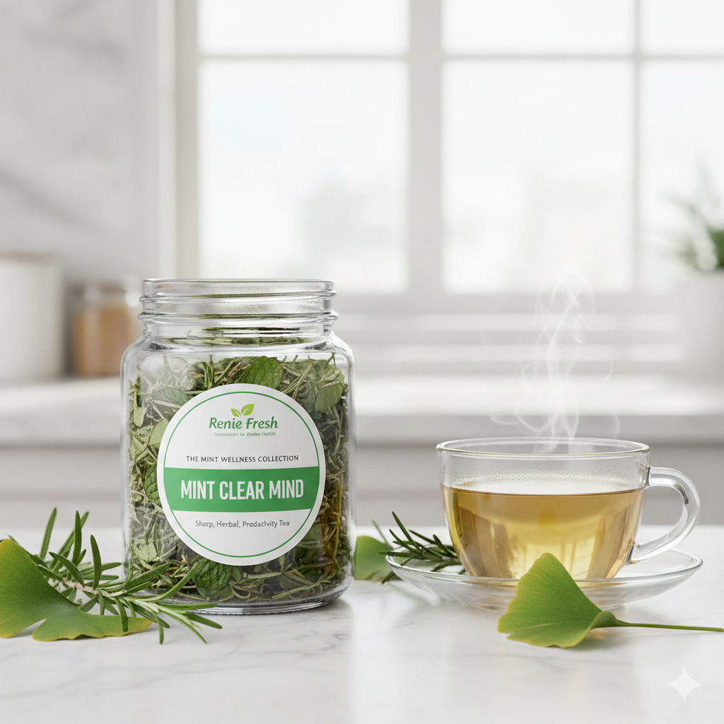 A cool and aromatic blend of mint, rosemary, and ginkgo designed to promote focus, clarity, and mental refreshment.