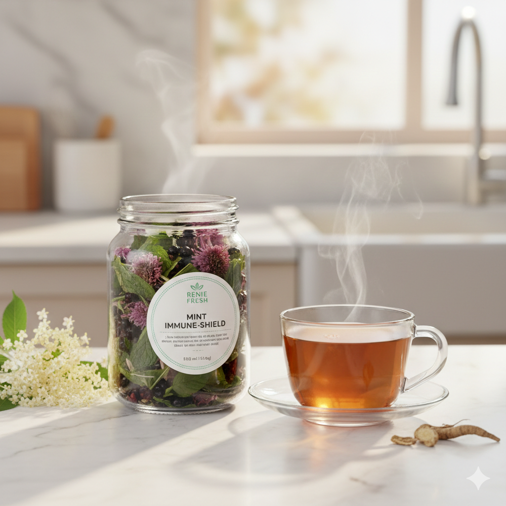 A refreshing mint infusion with elderflower and echinacea, traditionally used to support immune wellness and seasonal comfort.